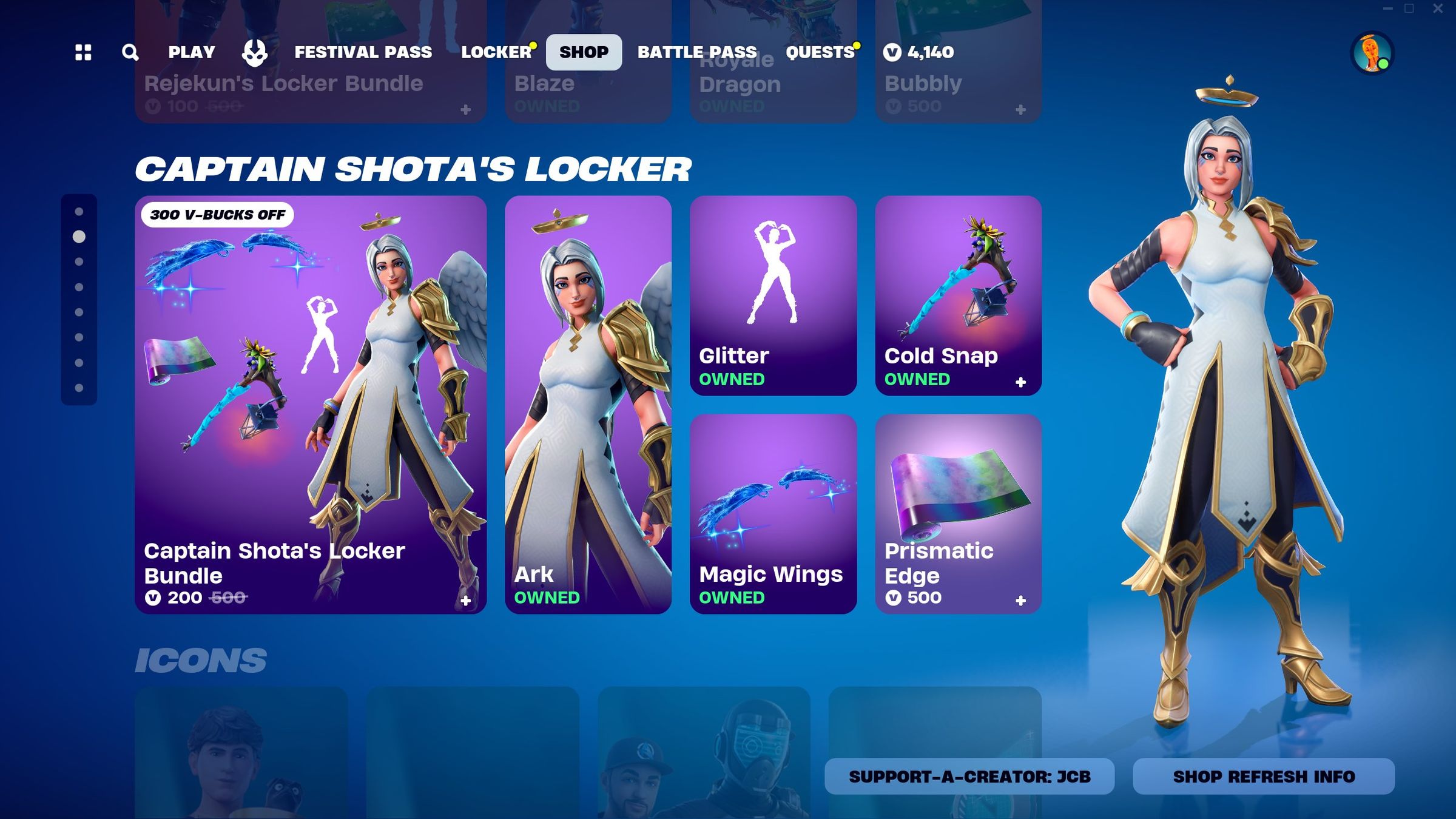 В комплект Captain Shota 's Locker Bundle, доступный для 2500 V-Bucks, входят следующие косметические средства: